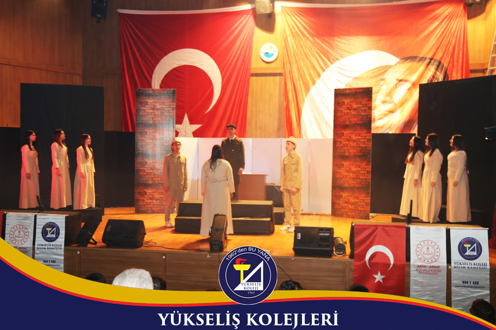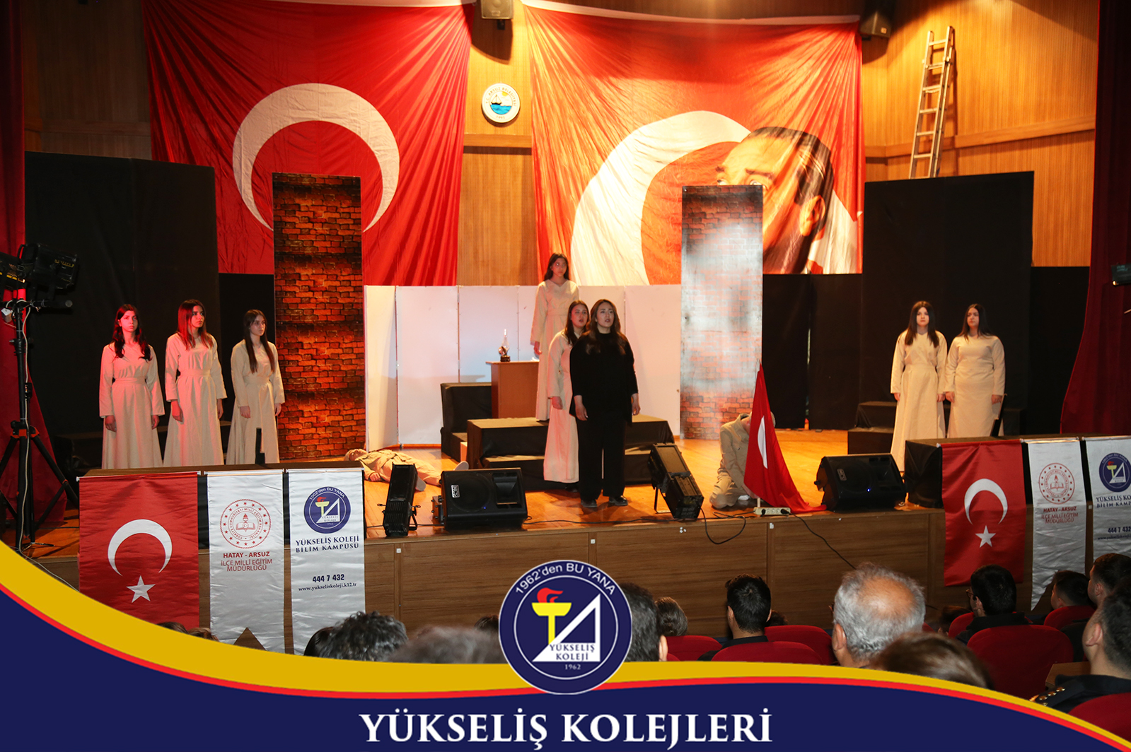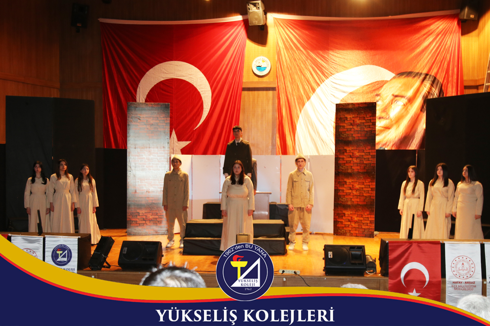 Programa Arsuz Kaymakamı Fatih Eroğlu, İlçe Jandarma Komutanı Bnb. İbrahim Dündar, Arsuz Emniyet Müdürü Volkan Türkmenoğlu, İlçe Millî Eğitim Müdürü Ahmet Yanmaz, Belediye Başkan Yardımcısı Süleyman Devrim, Yükseliş Koleji Kurucusu Nuri Üysen, Yükseliş Koleji Genel Müdürü Aykut Davut Öktem, diğer protokol üyeleri ile Arsuz’daki öğretmen ve öğrenciler katılım gösterdi.